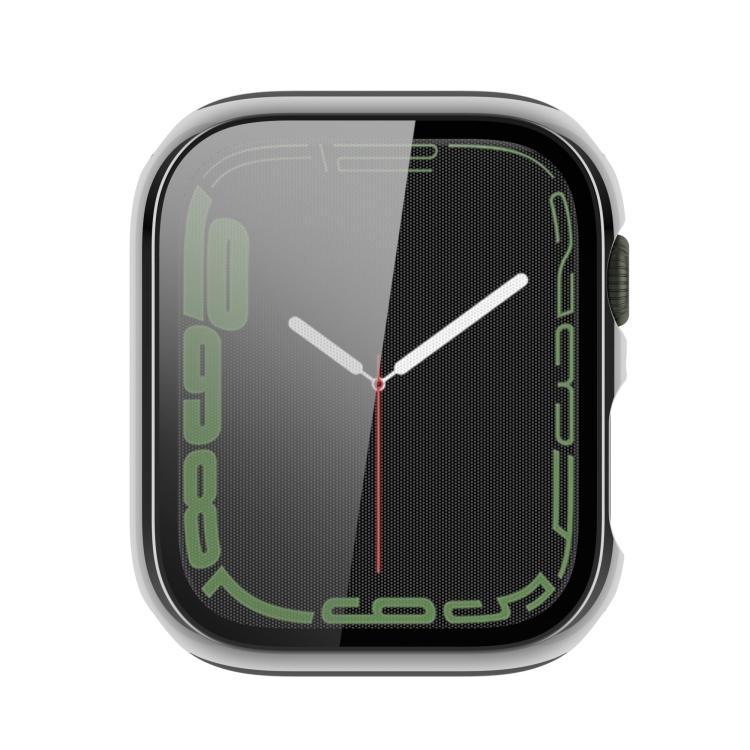 Funda Protectora para Apple Watch Series 9/8/7 41mm con Galvanoplastia y Vidrio Templado (Plateado)