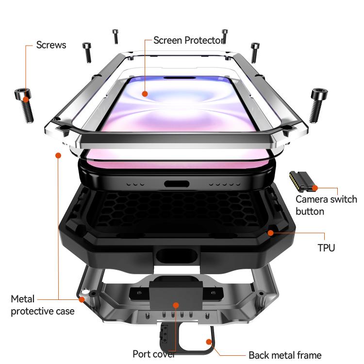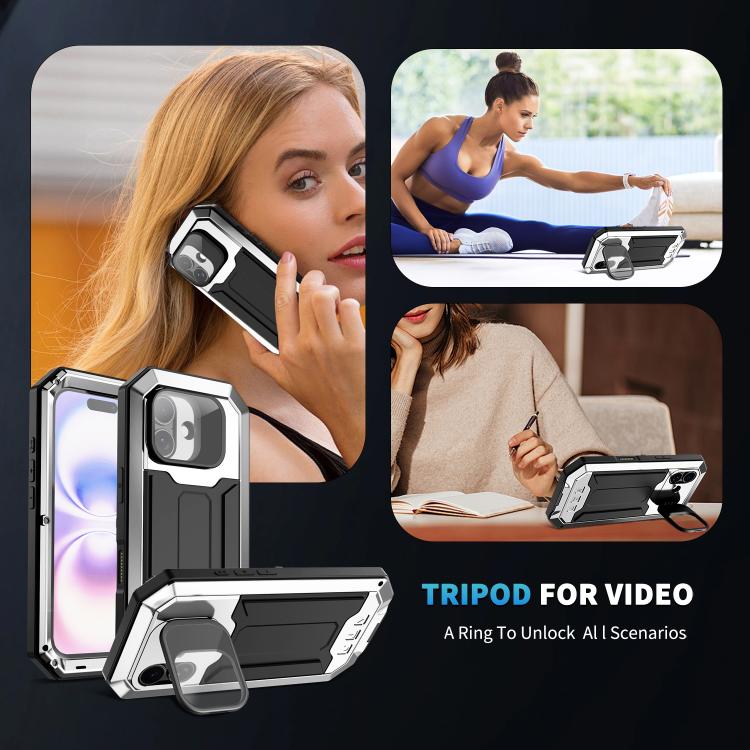 Funda R-JUST con cámara deslizante IP54 resistente al agua para iPhone 17 (plateada)