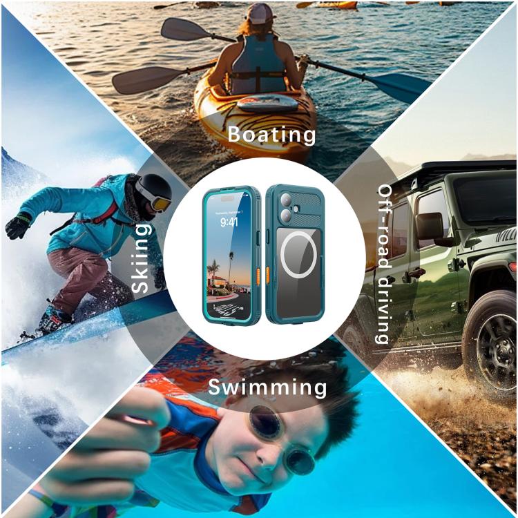 Funda RedPepper IP68 resistente al agua y con triple protección MagSafe para iPhone 17 (Azul lago + Azul hierba)