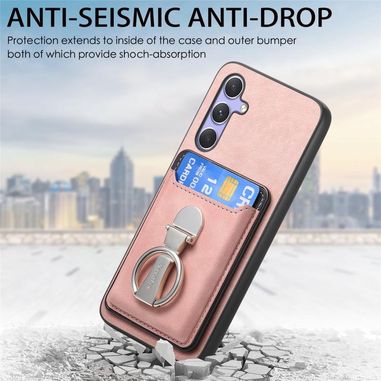 Funda retro plegable con anillo y tarjetero MagSafe para Samsung Galaxy A34 5G (rosa)