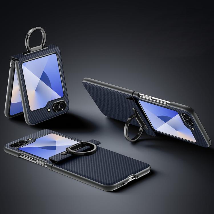 Funda SULADA 600D con textura de Kevlar para Samsung Galaxy Z Flip6, a prueba de golpes, con soporte para anillo (azul)