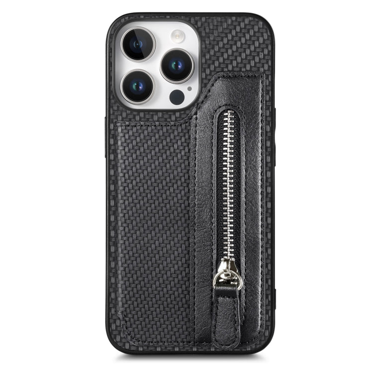 Funda Tipo Billetera con Cremallera y Tapa Horizontal de Fibra de Carbono para iPhone 16 Pro Max (Negra)