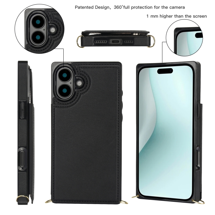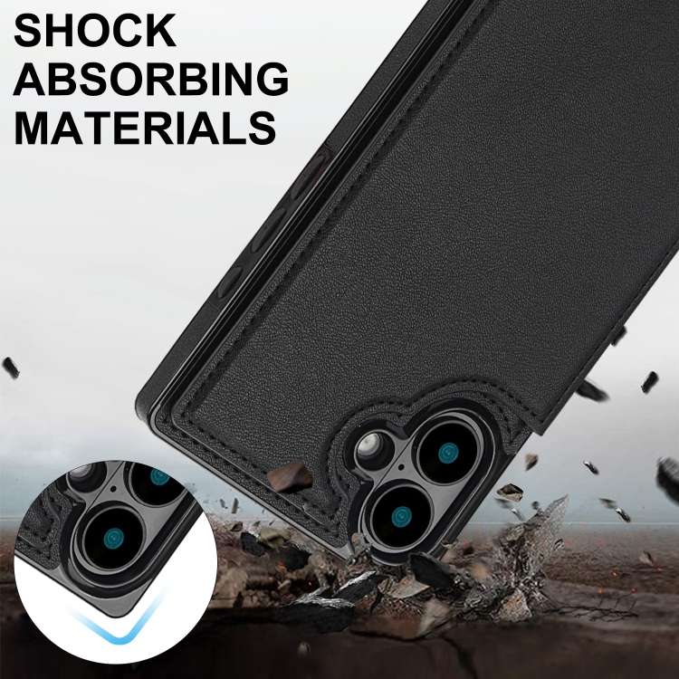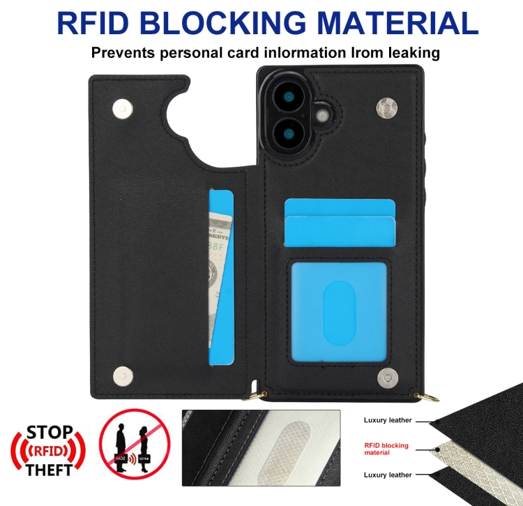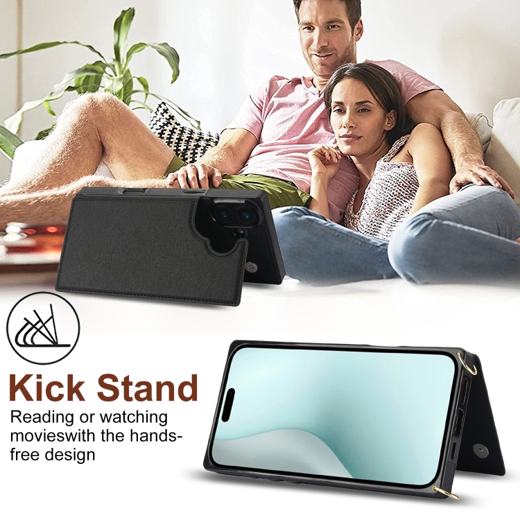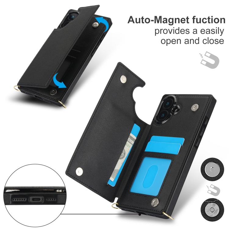 Funda Tipo Billetera para iPhone 16 con Tapa Tarjeta y Doble Hebilla (Negra)