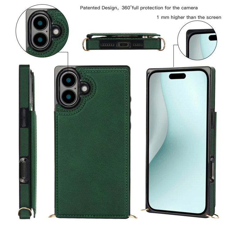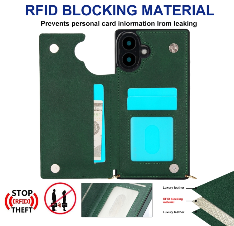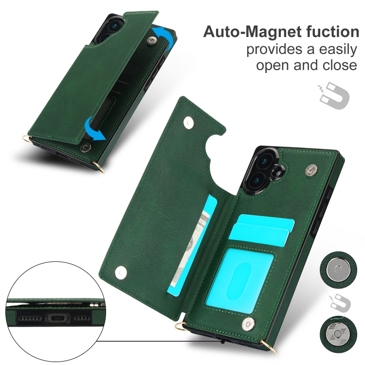 Funda Tipo Billetera para iPhone 16 con Tapa Tarjeta y Doble Hebilla (Verde)