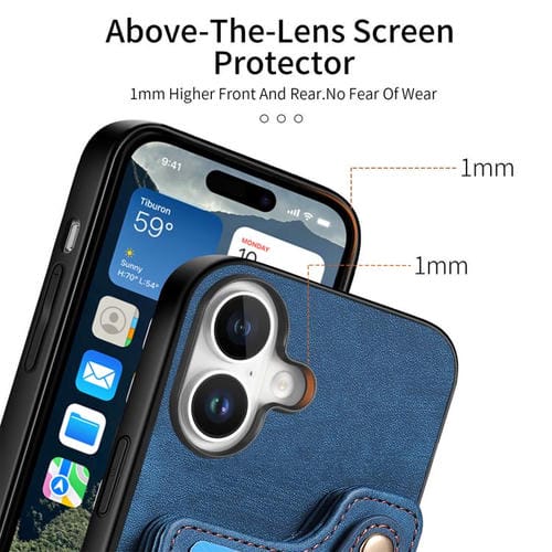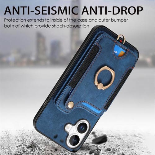 Funda tipo cartera con anillo multitarjeta y diseño retro para iPhone 17 (azul)