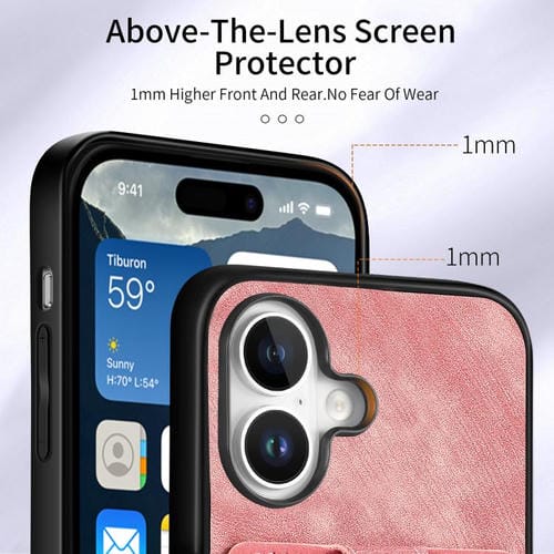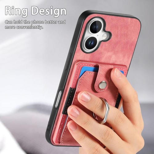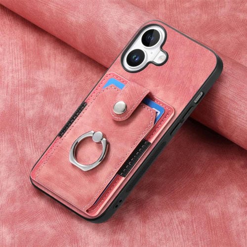 Funda tipo cartera con anillo y tarjetero para iPhone 17, estilo retro, con tacto de piel (rosa)
