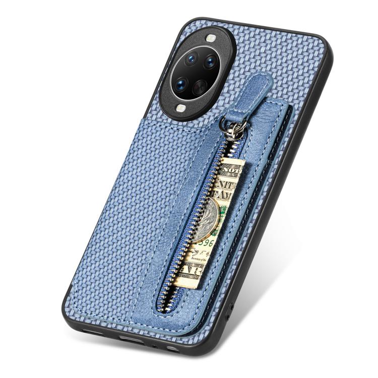 Funda tipo cartera con cremallera horizontal y tapa de fibra de carbono para Huawei nova 14 Pro (azul)