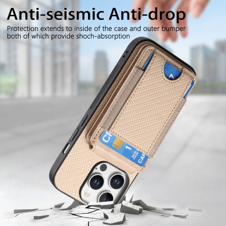 Funda Tipo Cartera Fibra de Carbono para iPhone 16 Pro Max (Caqui)