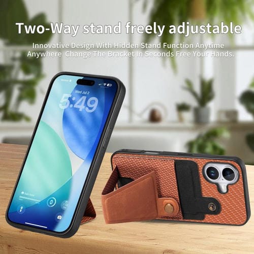 Funda tipo cartera de fibra de carbono con tarjetero en forma de K para iPhone 17 (marrón)