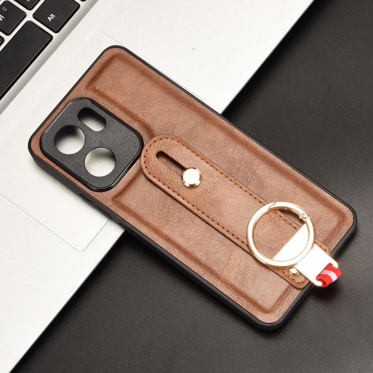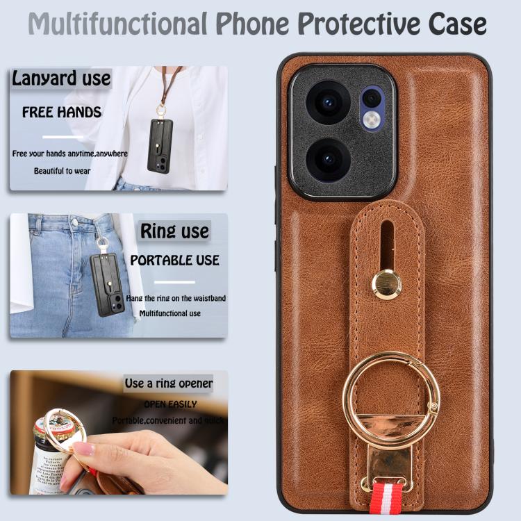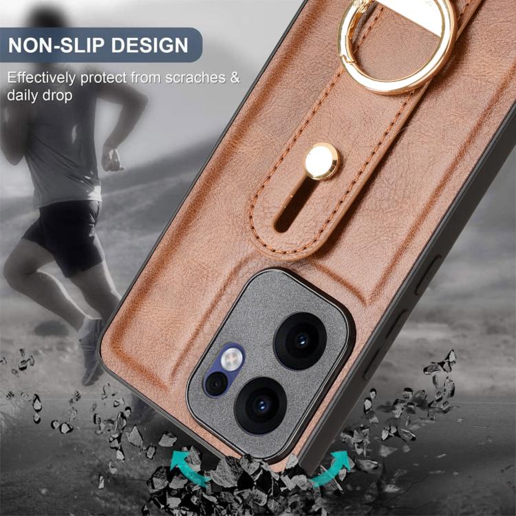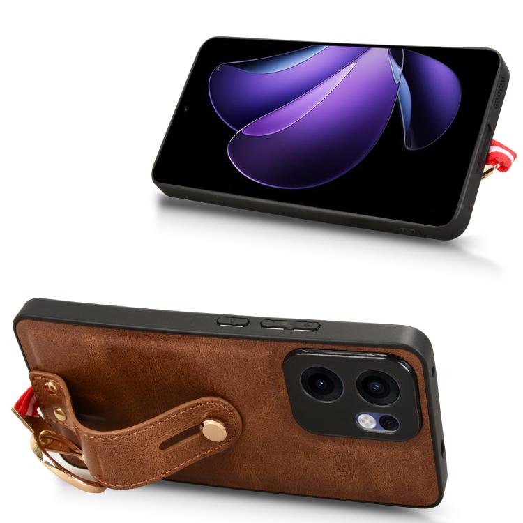 Funda Trasera de Cuero con Correa para Oppo Reno13 F 5G (Marrón)