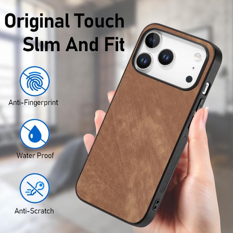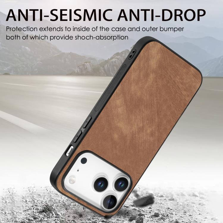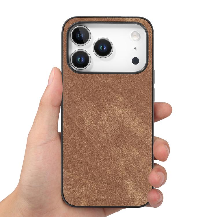 Funda trasera de PC de cuero vintage para iPhone 17 Pro (marrón)
