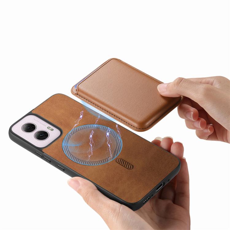 Funda Trasera PU con Tarjetero Magsafe para Motorola Moto G 5G (2024) (Marrón)