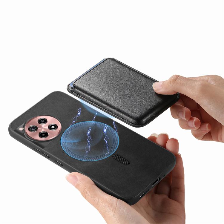 Funda Trasera PU con Tarjetero Magsafe Retro para OnePlus 13 (Negra)