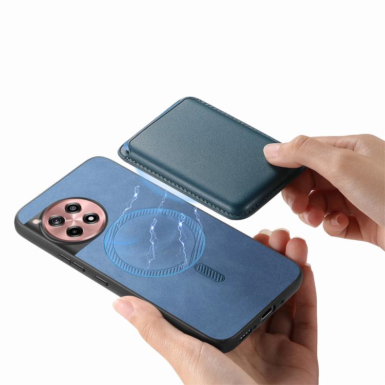 Funda Trasera PU con Tarjetero Magsafe Retro para OnePlus Ace 3/12R 5G (Azul)