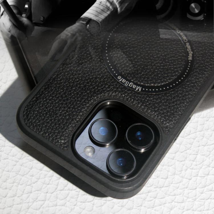 Funda trasera MagSafe de PU con textura de lichi para iPhone 16 (azul)