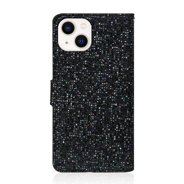 Funda de Cuero Glitter Powder Horizontal Flip para iPhone 14 Max (Negro)