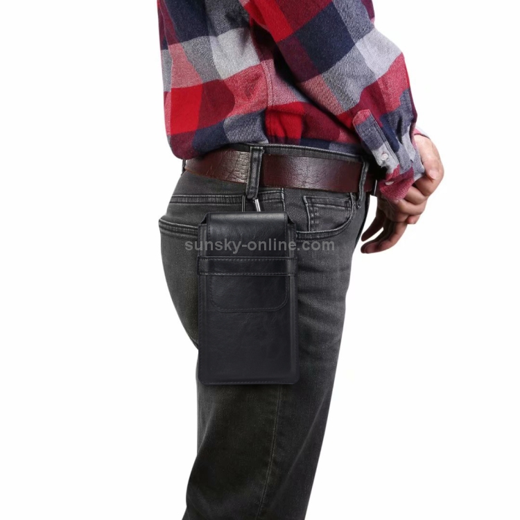 Riñonera Estuche de Cuero Piel de Cordero para Teléfono Móvil Universal 7.2" (Negro)