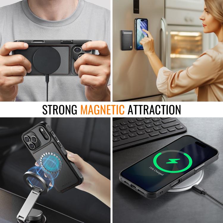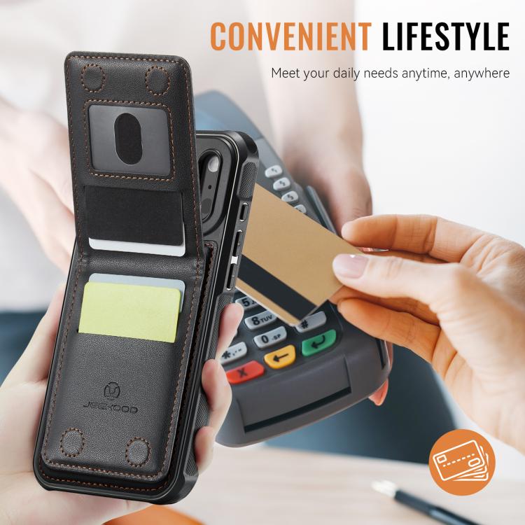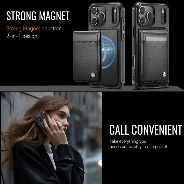 JEEHOOD J06 - Funda de PU con tarjetero RFID MagSafe estilo británico para iPhone 17 Pro Max (negra)