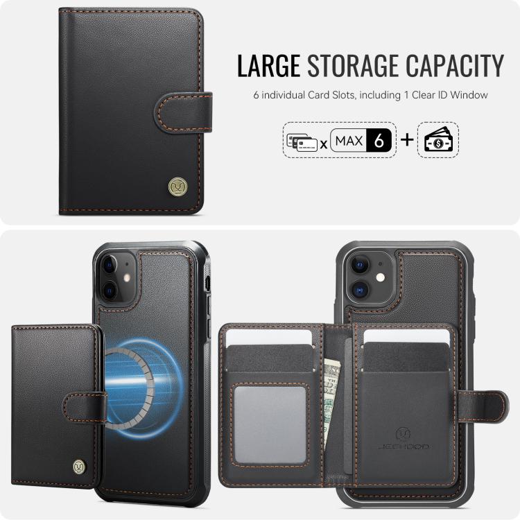 JEEHOOD J09 - Funda de cuero con hebilla para iPhone 12/12 Pro, estilo magnético, RFID, MagSafe (negro)