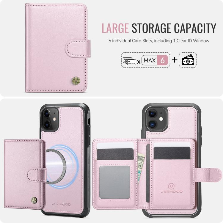 JEEHOOD J09 - Funda de cuero con hebilla para iPhone 12/12 Pro, estilo magnético, RFID, MagSafe (rosa)