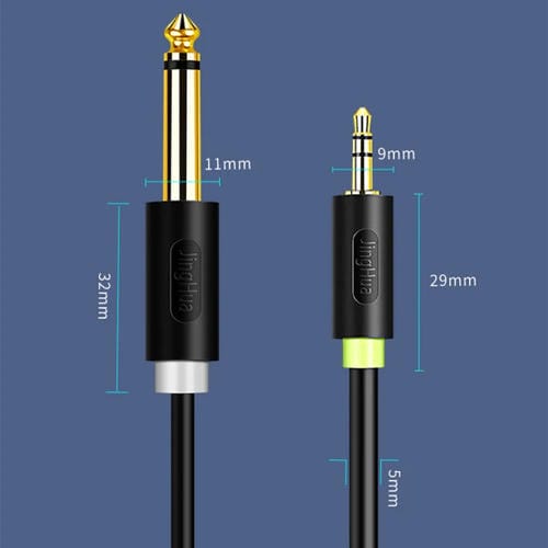 - 1x Cable de Audio Jinghua 3,5 mm a Doble 6,5 mm para Amplificador Mezclador Doble Canal 10 m