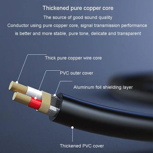 El Cable de audio Jinghua 3,5 mm a doble 6,5 mm es un componente diseñado para conectar dispositivos de audio con diferentes tipos de entrada y salida, especialmente indicado para amplificadores y mezcladores de doble canal. Con una longitud de 10 metros, este Cable ofrece una solución eficiente para usuarios que requieren extender la Conexión de audio sin pérdida de calidad. Su construcción con núcleo de cobre puro y Conectores chapados en oro garantiza una transmisión de Señal estable y clara, mientras que su cuerpo de PVC proporciona durabilidad y resistencia al desgaste. Compatible con dispositivos que cuentan con interfaces de 3,5 mm y 6,5 mm, este Cable es ideal para aplicaciones profesionales y domésticas en sistemas de audio.