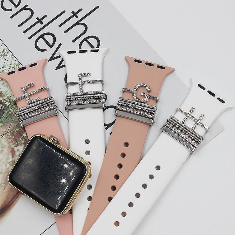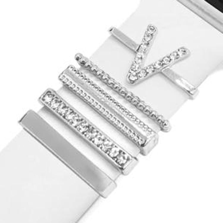 Juego de 5 anillos decorativos de metal con letras para reloj inteligente, estilo V