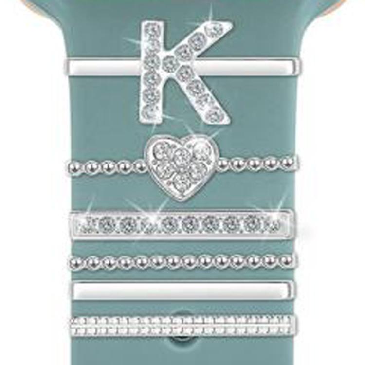 Juego de 6 correas de silicona universales para reloj inteligente, accesorios de metal decorativos, tamaño K (plata)