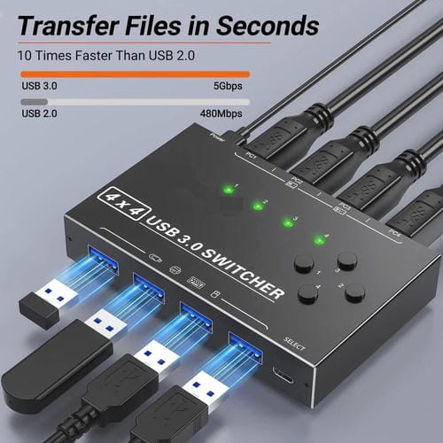 - 1x Dispositivo Compartido USB 3.0 Kc-Km434B de 4 Puertos para Compartir Impresora, Ratón y Teclado