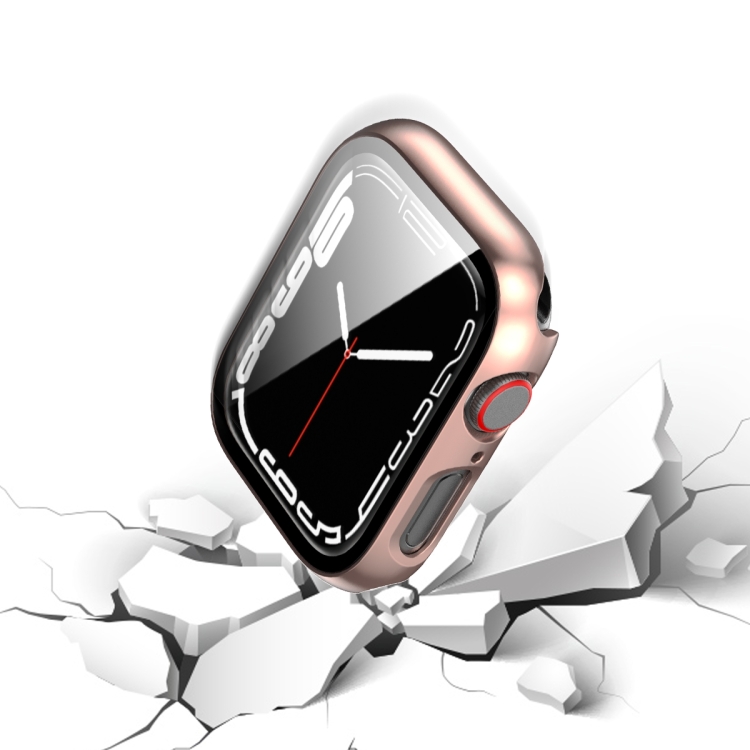 Marco de PC 2 En 1 + Estuche Protector Vidrio Templado para Apple Watch Series 8/7 45mm (Oro Rosa)
