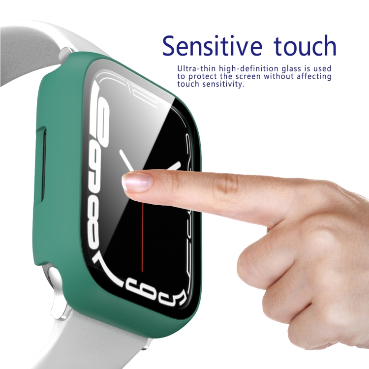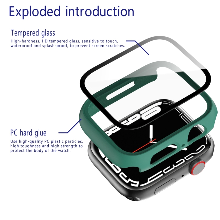 Marco de PC 2 en 1 + Estuche Protector Vidrio Templado para Apple Watch Series 8/7 45mm (Verde)
