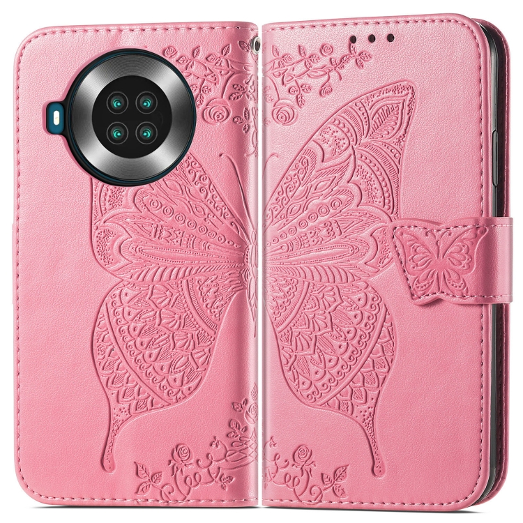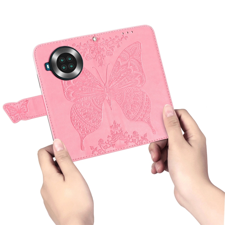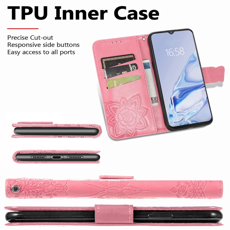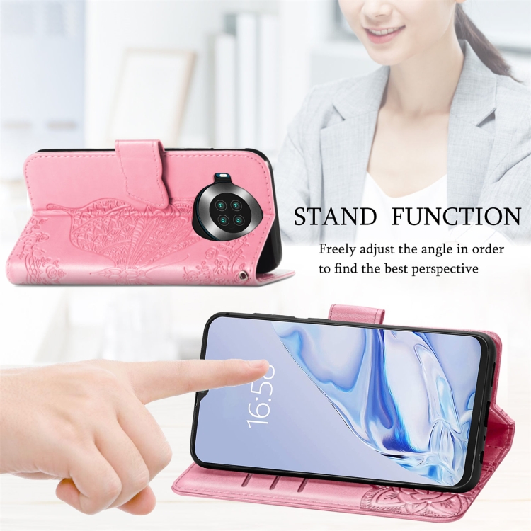 Funda de Cuero Horizontal Cubot Note 20 Mariposa Amor Flores En Relieve con Soporte, Tragamonedas, Billetera y Cordón (Rosa)