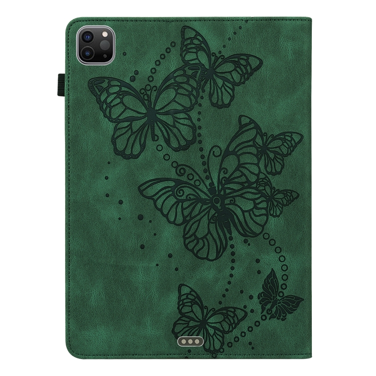 Funda para Tableta Apple iPad Pro 11 2021 y Air 4 Modelo Mariposa en Relieve Cuero Horizontal (Verde)