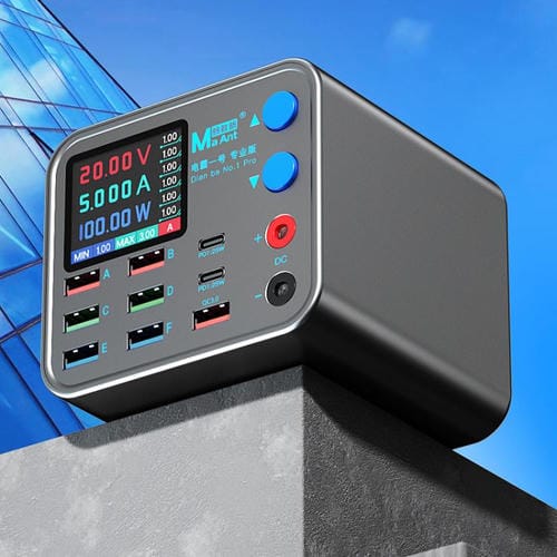El Cargador MultiPuerto Maant Dianba No.1 Pro es una fuente de Alimentación avanzada diseñada para ofrecer una solución integral de Carga para múltiples dispositivos electrónicos. Equipado con 9 Puertos, incluyendo dos Puertos PD de 25 W, un Puerto QC3.0 y seis Puertos de Carga rápida de 3 A, además de una Carga Inalámbrica de 10 W, este Cargador permite alimentar smartphones, tabletas, Computadoras, Relojes inteligentes y Auriculares simultáneamente. Cuenta con un enchufe europeo y una Pantalla Digital a color de 1.8 pulgadas que muestra en tiempo real el estado de Carga y los parámetros eléctricos, facilitando un control preciso y seguro. Su voltaje de salida es ajustable entre 0-20 V con alta precisión, incorporando un chip de gestión inteligente que identifica automáticamente los dispositivos conectados para optimizar la Carga sin dañar las Baterías. Su diseño incluye un Ventilador de enfriamiento y protección de 8 capas para garantizar la seguridad durante la operación.