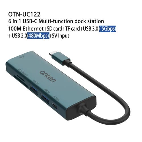 Hub USB 3.0 Onten UC122 6 en 1 USB-C Type-C a SD TF Tarjeta de Red 100Mbps con Entrada 5V