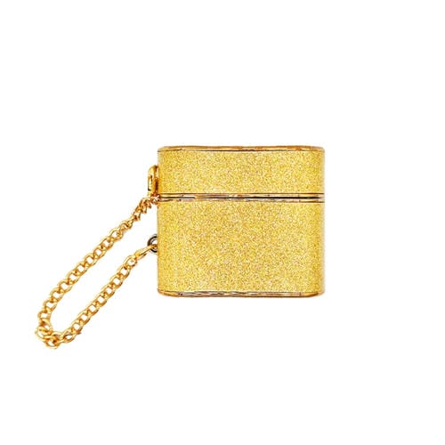 Funda Protectora Para AirPods 3 Auriculares Bluetooth Textura Cuero Brillo Cilíndrico (Dorado)