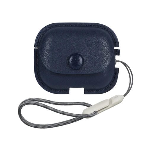 Funda Protectora para AirPods Pro 2 Litchi Texture PU Cuero con Cordón (Azul)
