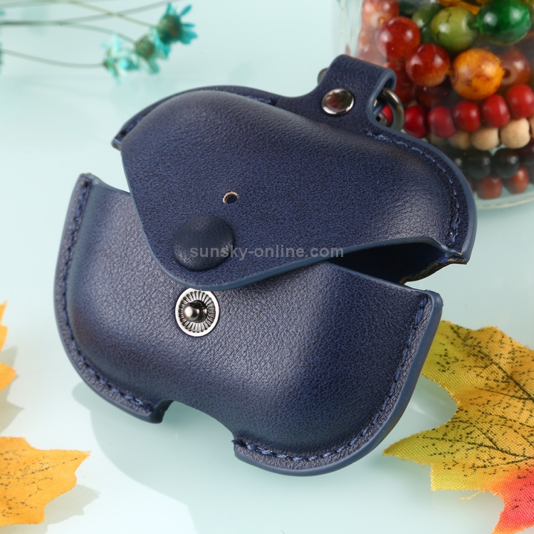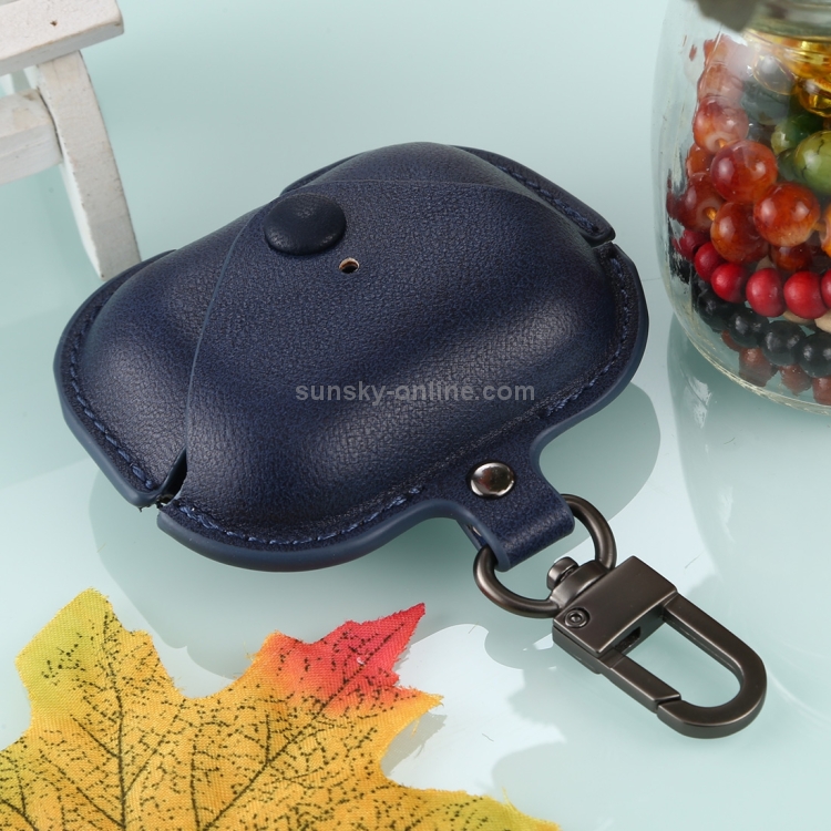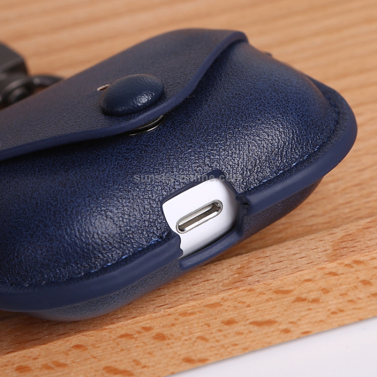 Funda Protectora para AirPods Pro Litchi Texture PU Cuero con Gancho (Azul)