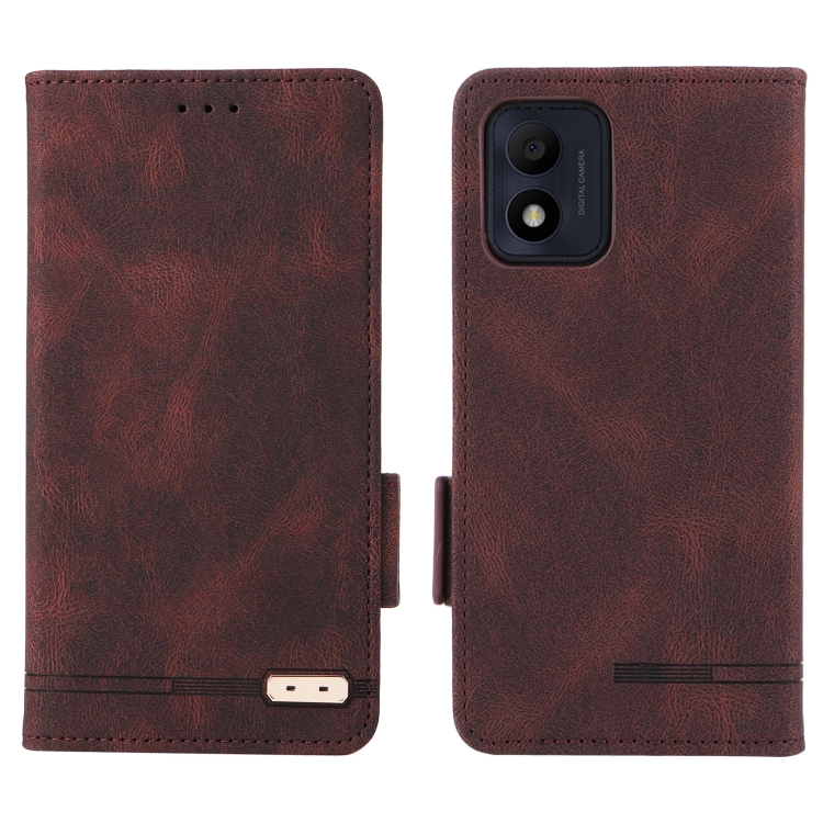 Funda de Cuero para Alcatel 1B 2022 con Cierre Magnético (Marrón)