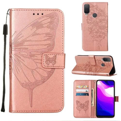 Funda para Alcatel 1L 2021 de Cuero con Mariposa en Relieve (Oro Rosa)