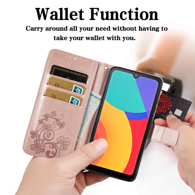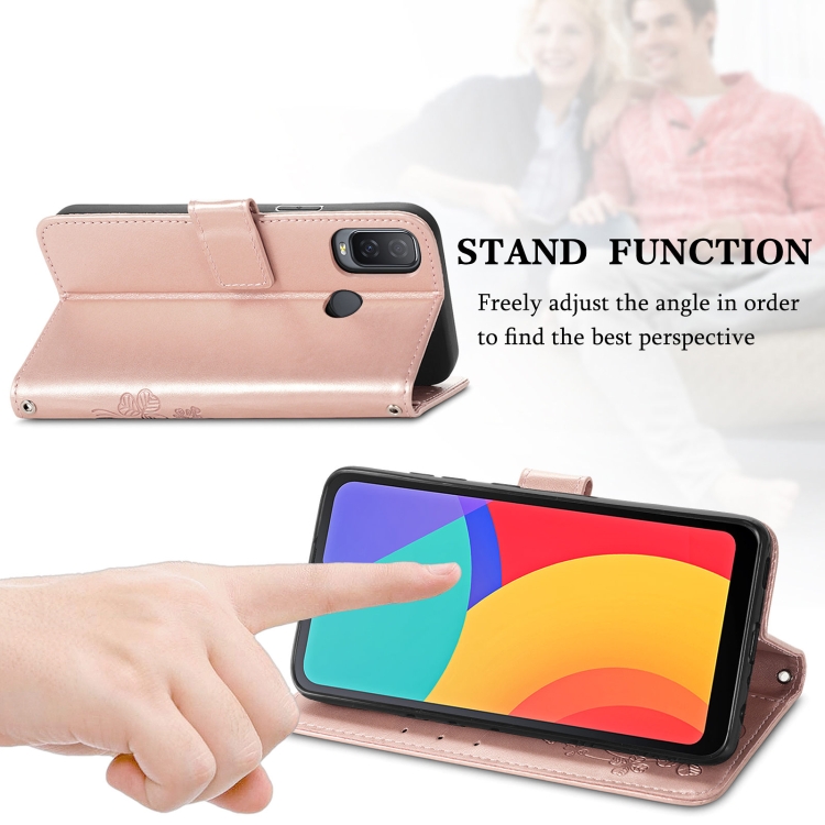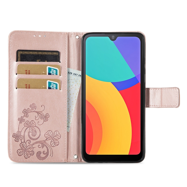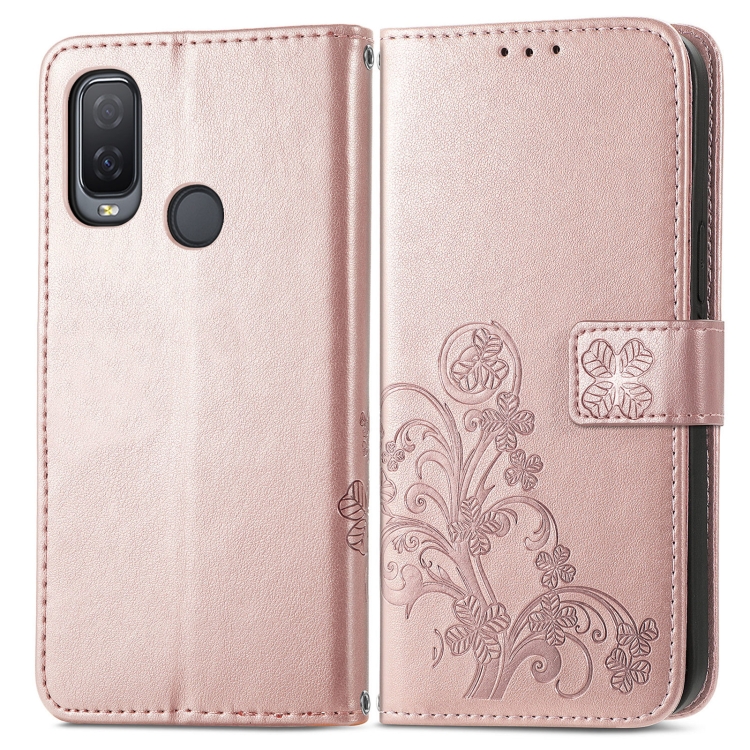 Funda de Cuero para Alcatel 1L 2021 con Cierre de Cuatro Hojas, Hebilla, Soporte y Tarjetero (Oro Rosa)