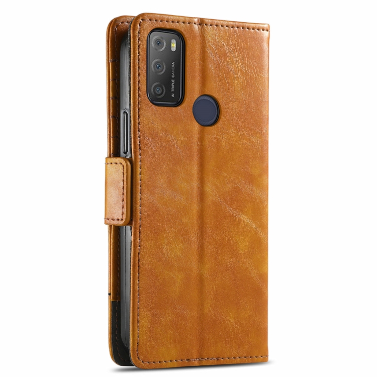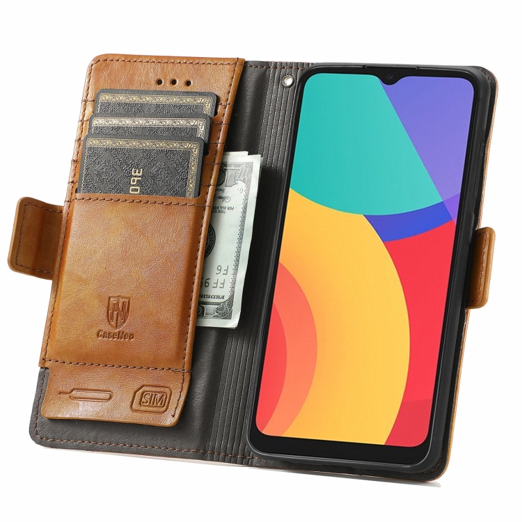 Funda para Alcatel 1S (2021) Caseno Business Cuero PU con Soporte, Billetera y Tragamonedas (Caqui)