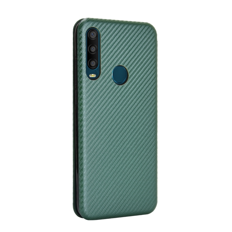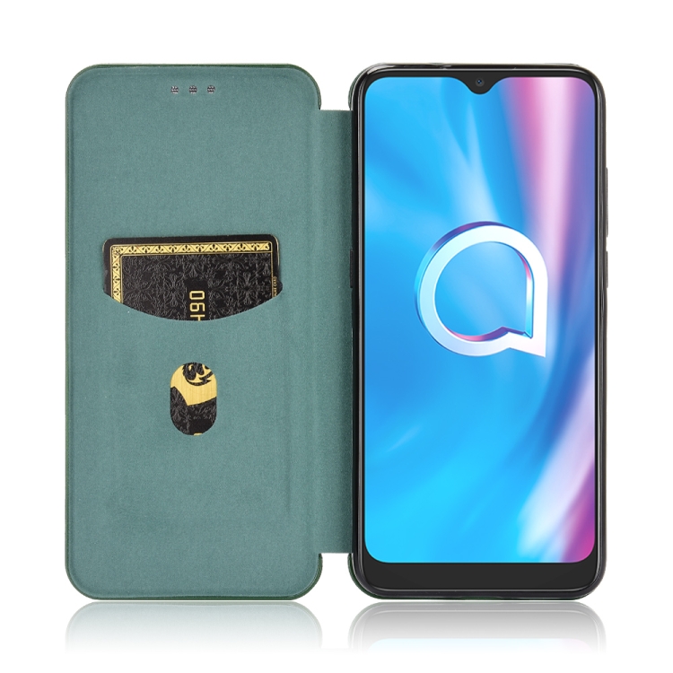 Funda cuero Alcatel 1Se 2020 tapa magnética horizontal fibra carbono TPU+PC+PU ranura tarjeta (Verde)