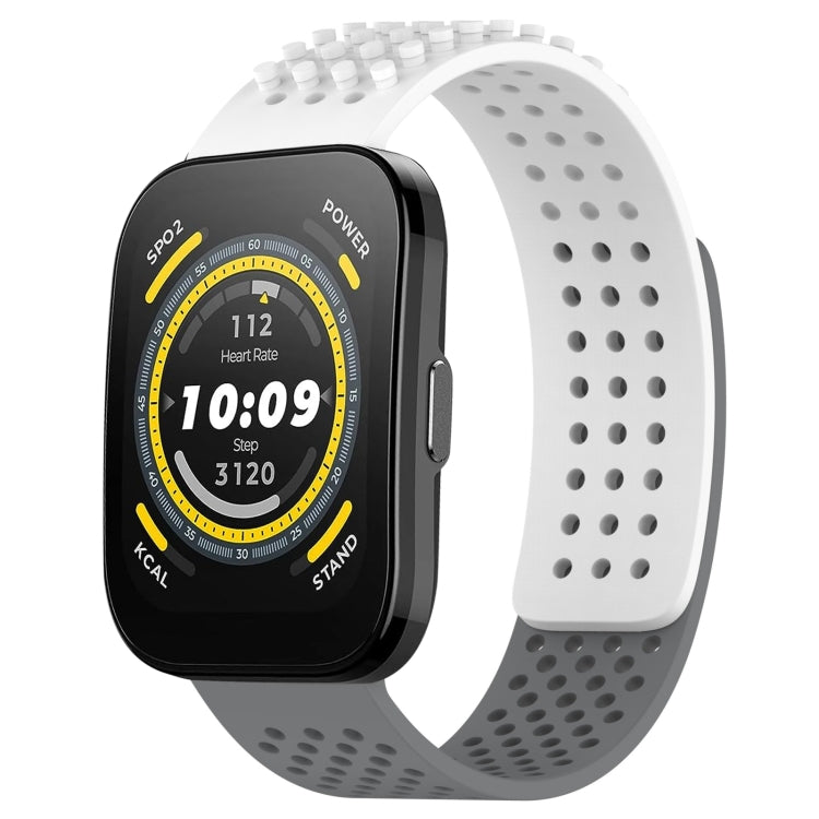 Correa de Silicona para Amazfit Bip 5 con Puntos 3D Transpirables y Orificios de 22mm (Blanco + Gris)