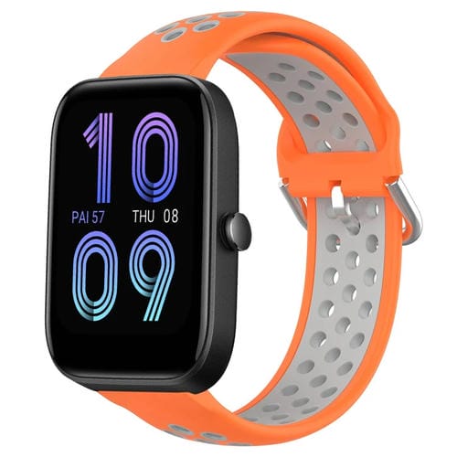 Correa de Silicona Deportiva para Amazfit Bip3 20mm Transpirable Perforada (Naranja + Gris)