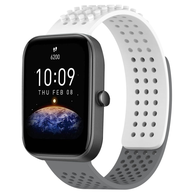 Correa de Reloj Amazfit Bip3 Silicona Transpirable con Puntos 3D y Orificios 20mm (Blanco + Gris)