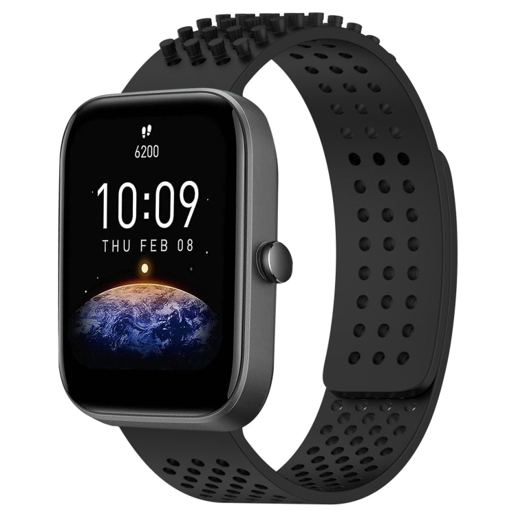 Correa de Silicona para Amazfit Bip3 con Puntos 3D Transpirables y Orificios de 20mm (Negro)
