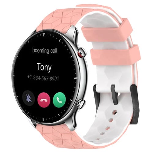 Banda de Reloj silicona para Amazfit GTR 2 22mm textura de fútbol dos colores (Rosa + Blanco)
