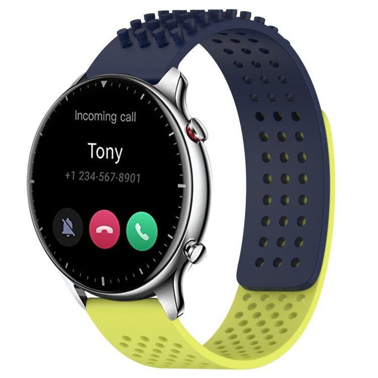 Correa de Silicona para Amazfit GTR 2 con Puntos 3D Transpirables y Orificios 22mm (Azul Medianoche + Verde Lima)