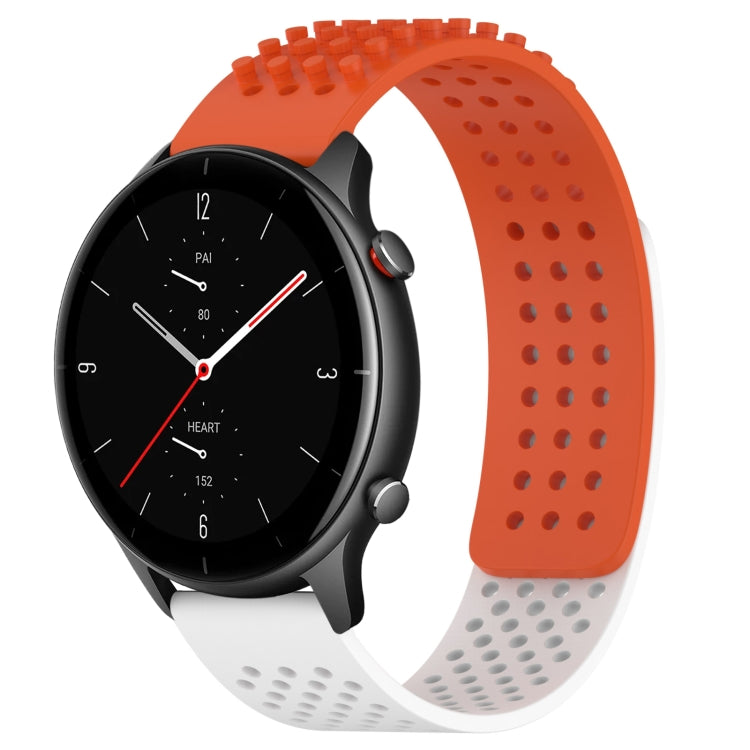 Correa de Silicona para Amazfit GTR 2E con Puntos 3D Transpirables y Orificios 22mm (Naranja + Blanco)
